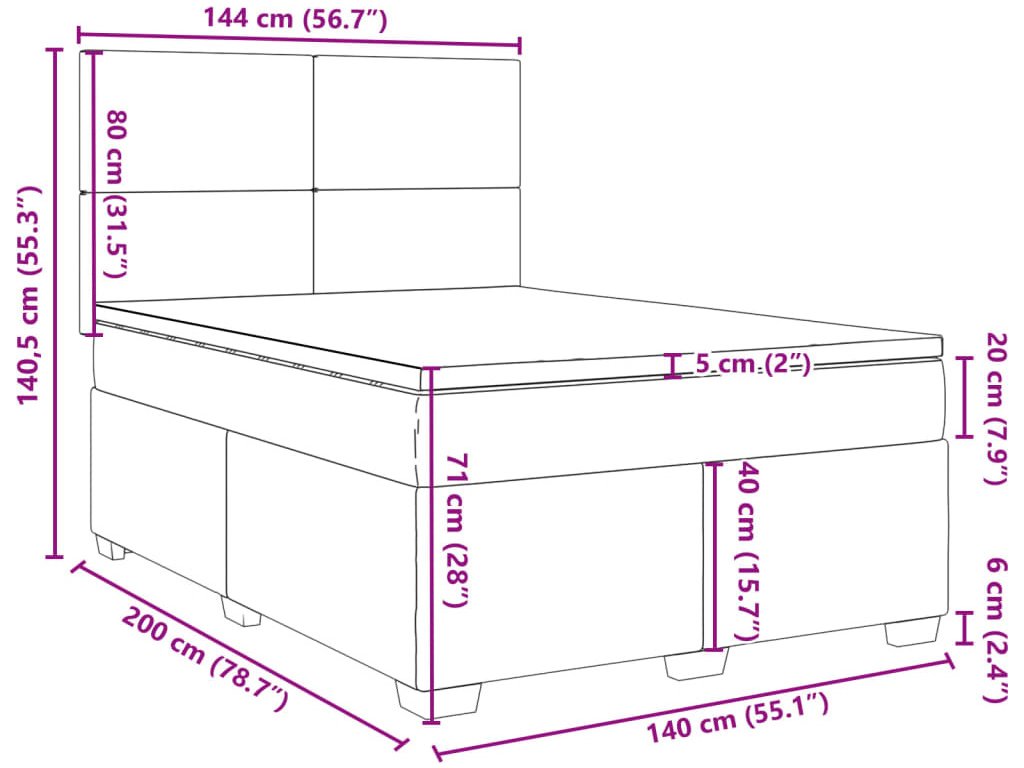 - Rozměry: 140 x 200 x 20 cm (Š x D x V)