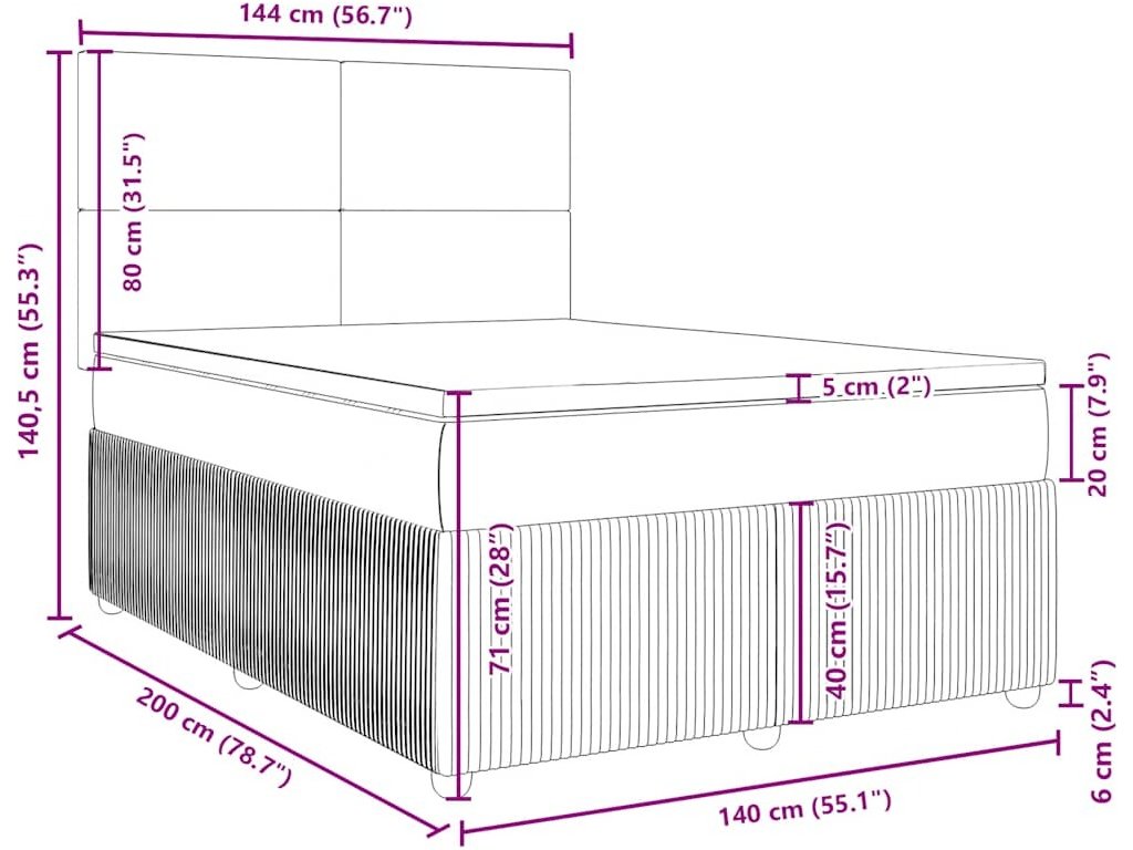 - Rozměry: 140 x 200 x 20 cm (Š x D x V)