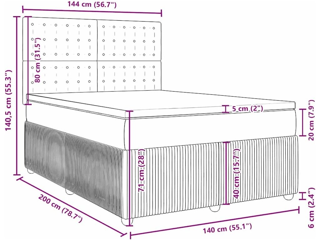 - Rozměry: 140 x 200 x 20 cm (Š x D x V)