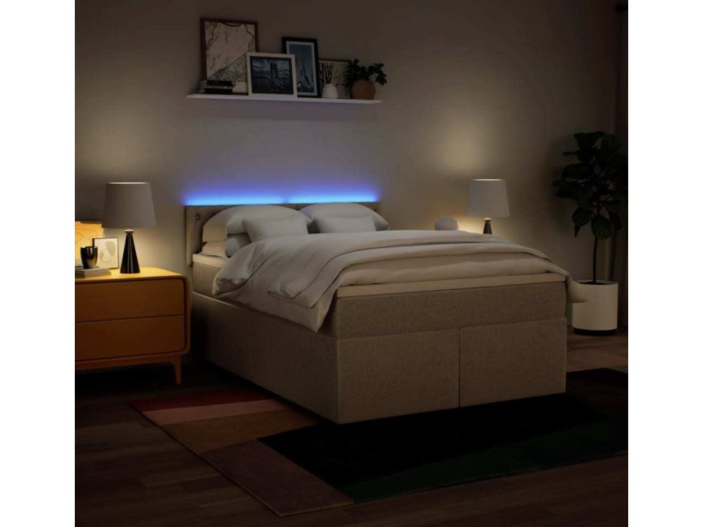 - Světla LED pro příjemnou atmosféru: Tato postel je vybavena LED osvětlením, které lze snadno nastavit a vytvořit tak individuální světelnou atmosféru. Umožňuje přizpůsobit režimy, barvy a jas, abyste si vytvořili příjemnou atmosféru svého interiéru.