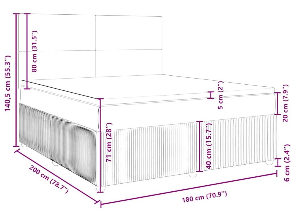 - Celkové rozměry: 180 x 200 x 20 cm (D x Š x V)