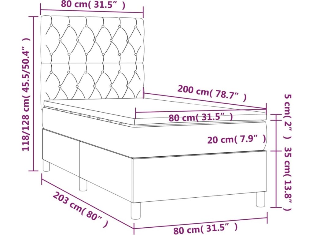 Box spring postel s matrací 80 x 200 cm samet [3143170]