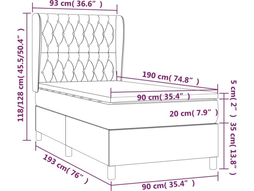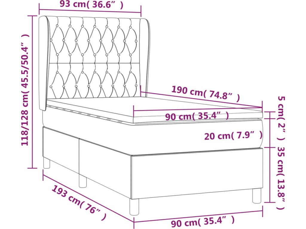 Box spring postel s matrací 90x190 cm textil [3128728]