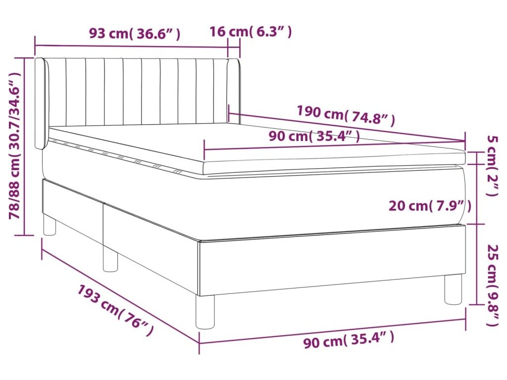 - Rozměry: 90 x 190 x 20 cm (Š x D x V)