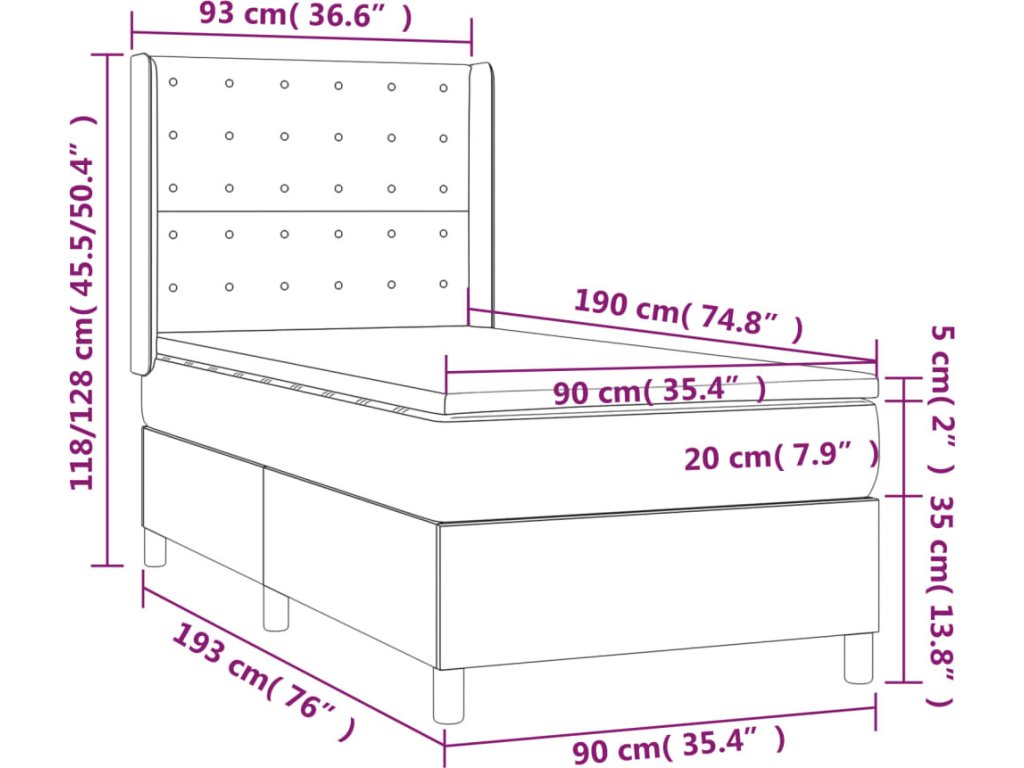 - Rozměry: 90 x 190 x 20 cm (Š x D x V)