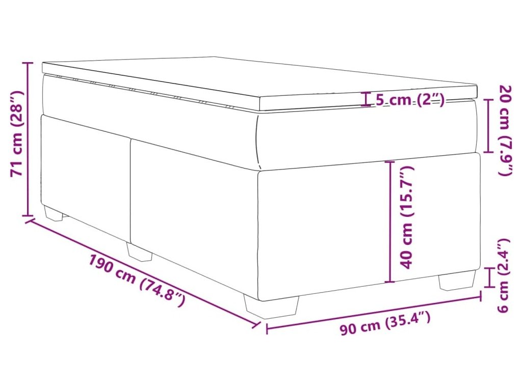 - Rozměry: 90 x 190 x 20 cm (Š x D x V)