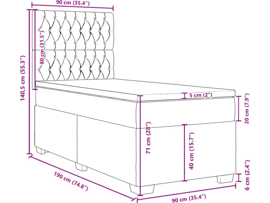 - Rozměry: 90 x 190 x 20 cm (Š x D x V)