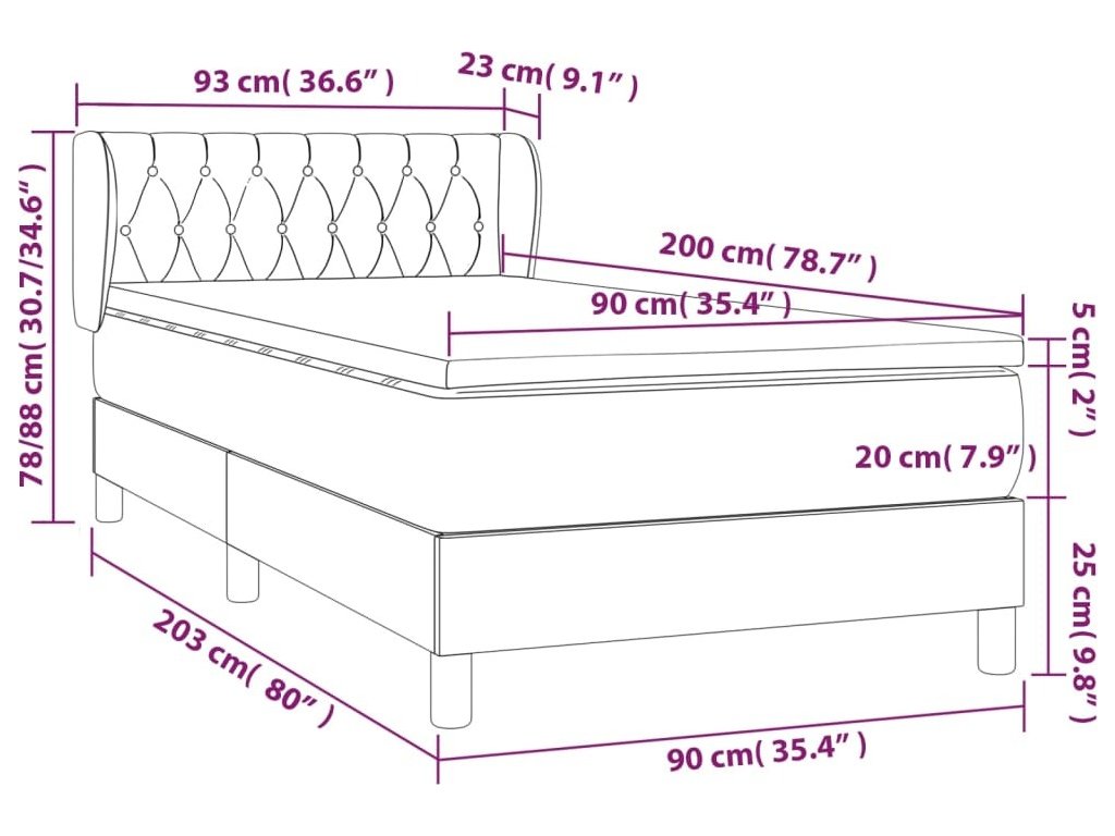 - Rozměry: 203 x 93 x 78/88 cm (D x Š x V)