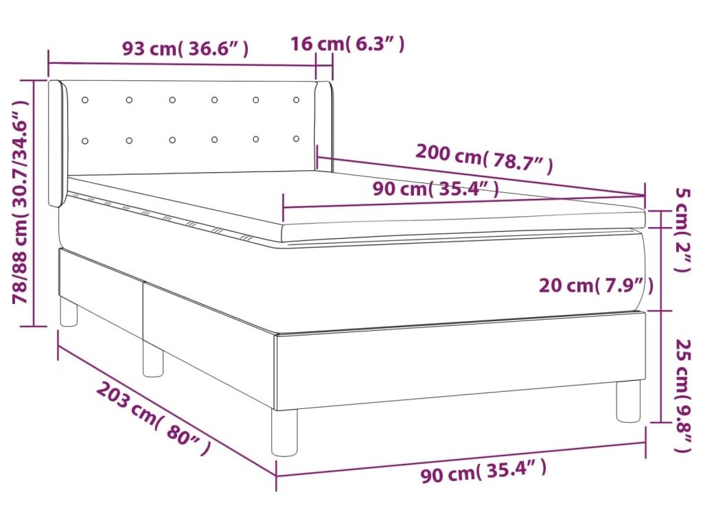 - Rozměry: 90 x 200 x 20 cm (Š x D x V)