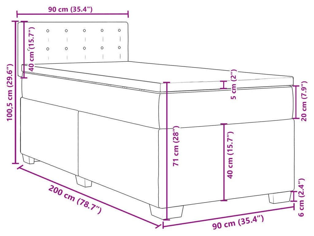 Box spring postel s matrací 90x200 cm textil [3285786]