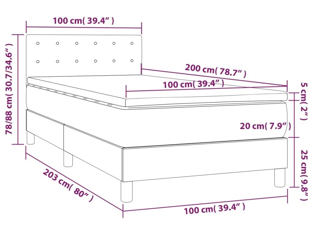 - Celkové rozměry: 203 x 100 x 78/88 cm (D x Š x V)