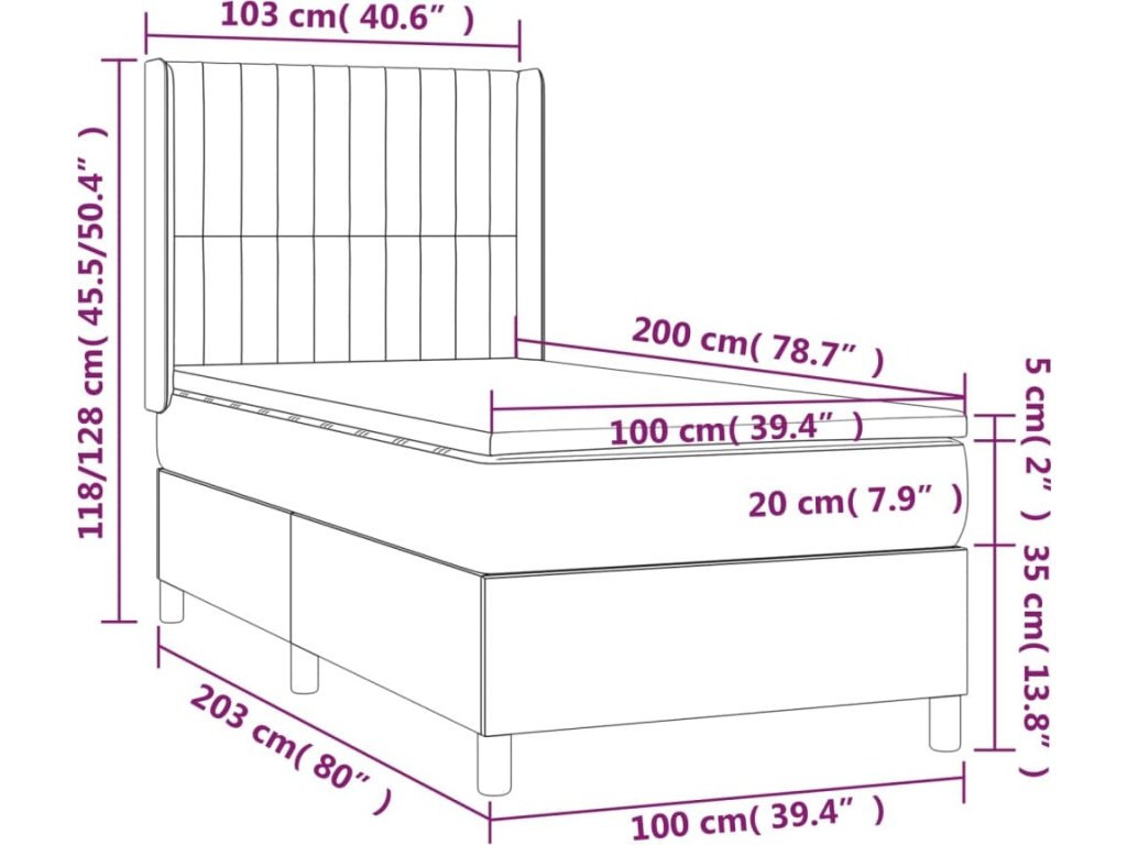 - Celkové rozměry: 203 x 103 x 118/128 cm (D x Š x V)