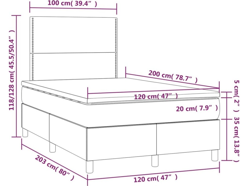 Box spring postel s matrací a LED 120 x 200 cm textil [3134782]