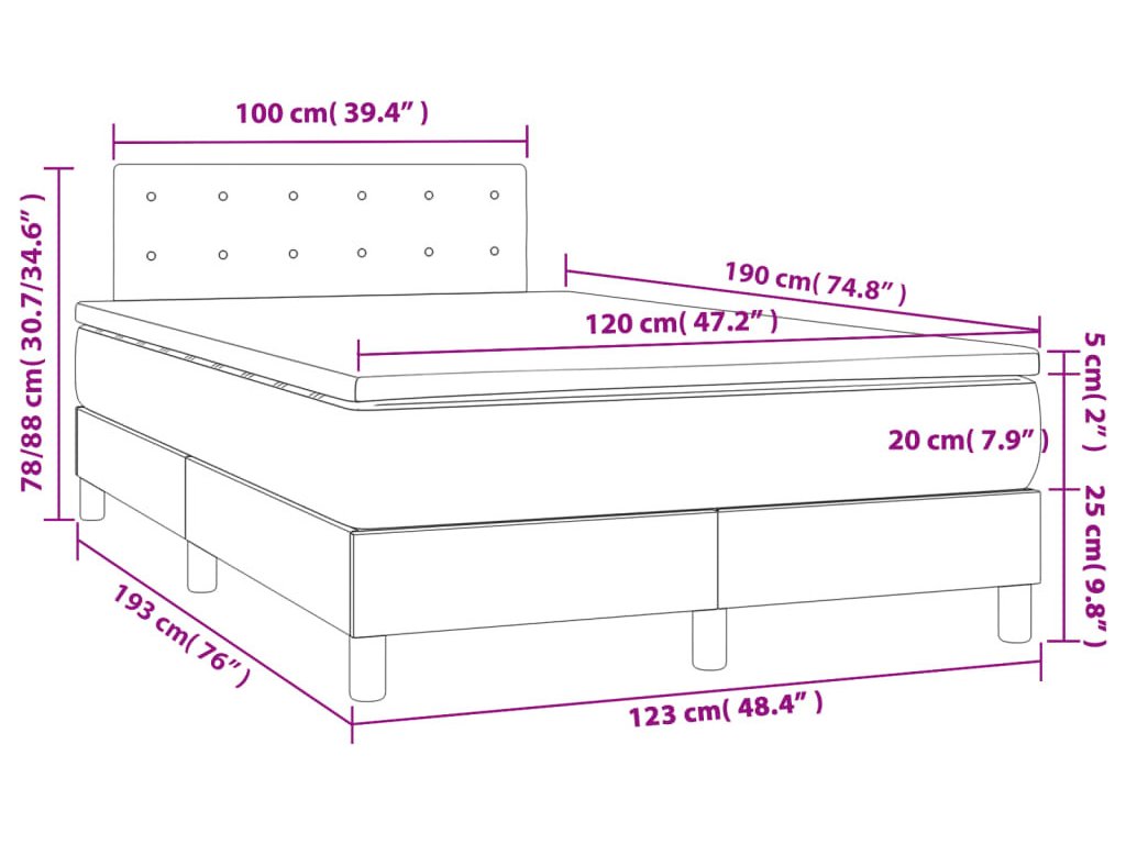 - Rozměry: 120 x 190 x 20 cm (Š x D x V)