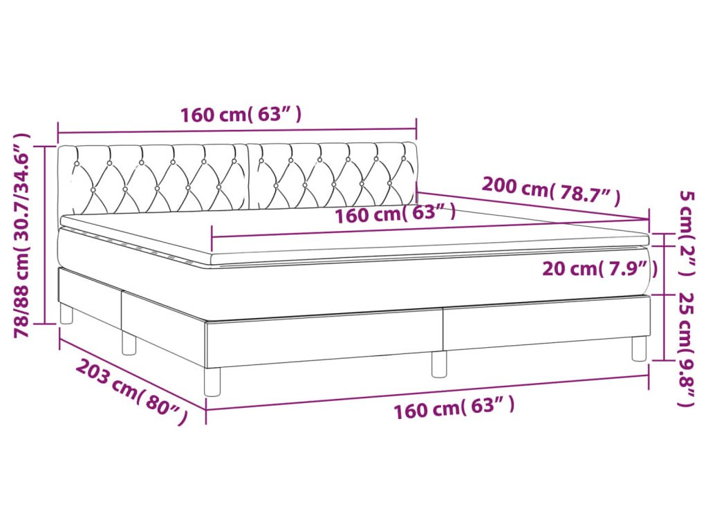 - Celkové rozměry: 203 x 160 x 78/88 cm (D x Š x V)