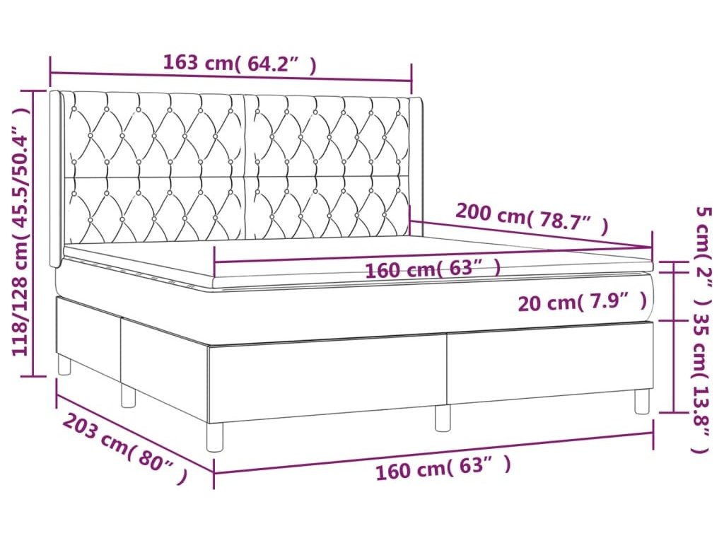 - Celkové rozměry: 203 x 163 x 118/128 cm (D x Š x V)