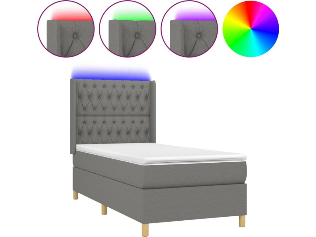 Používejte tuto box spring postel s matrací a LED světly a dopřejte si klidný spánek! Stane se ústředním bodem vaší ložnice.