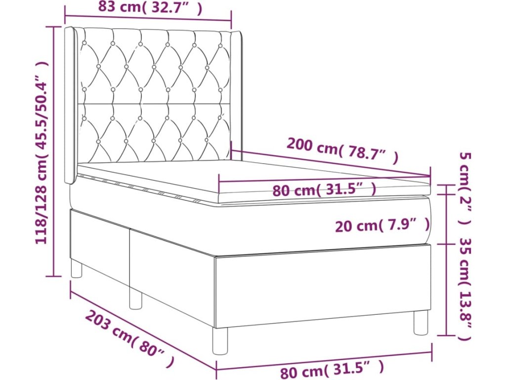 - Celkové rozměry: 203 x 83 x 118/128 cm (D x Š x V)