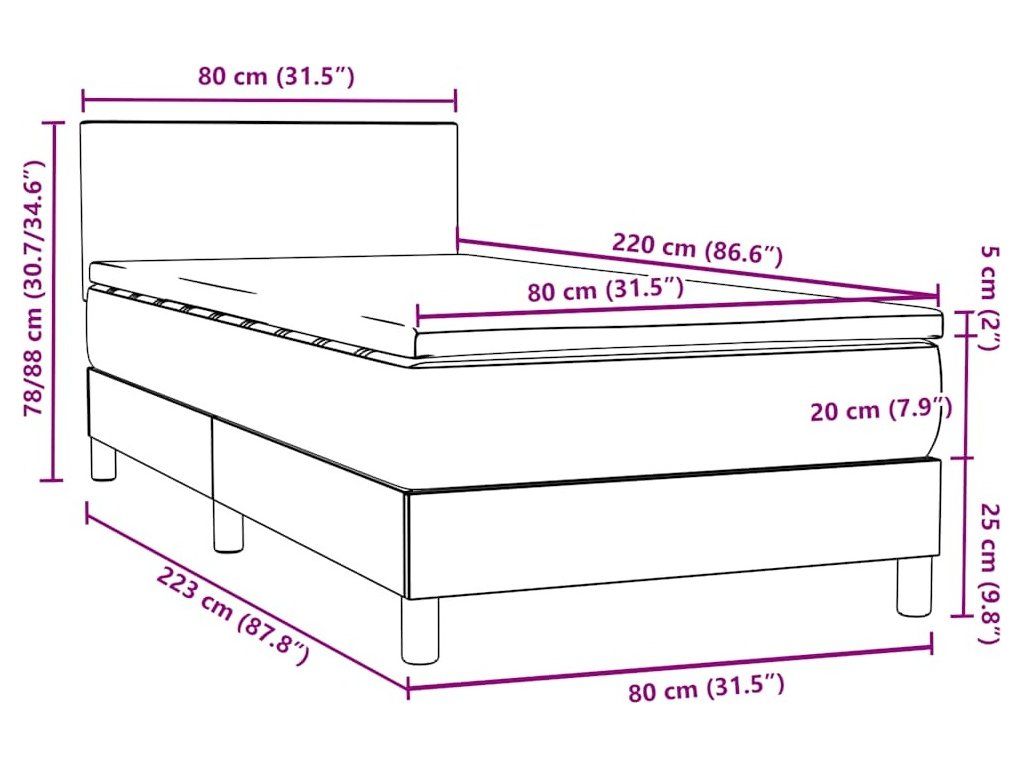 Box spring postel s matrací a LED 80x220 cm samet [3316715]