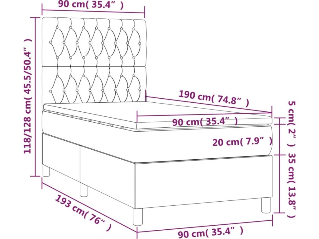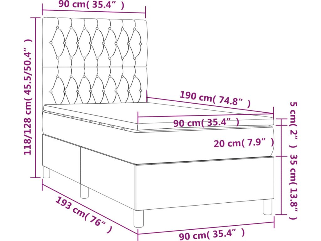 - Rozměry: 90 x 190 x 20 cm (Š x D x V)
