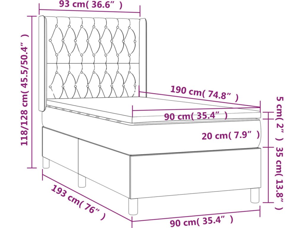 Box spring postel s matrací a LED 90x190 cm textil [3139077]