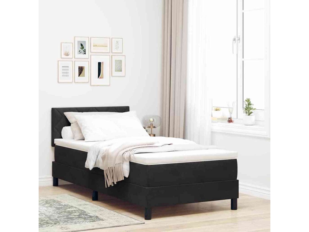Postel s boxspringem s matrací s čelo Černá 90 x 200 cm samet [3339214]