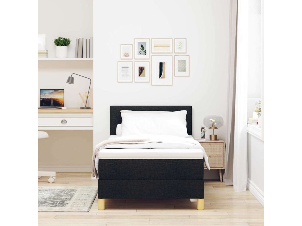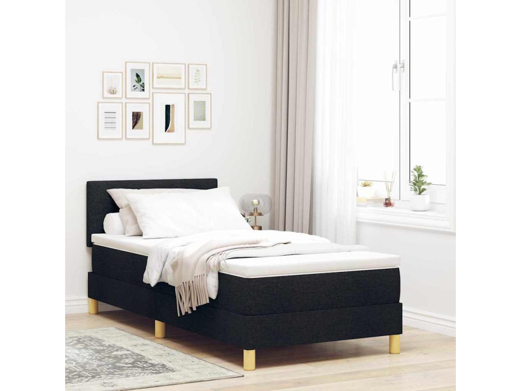 Postel s boxspringem s matrací s čelo Černá 90 x 200 cm textil [3338890]