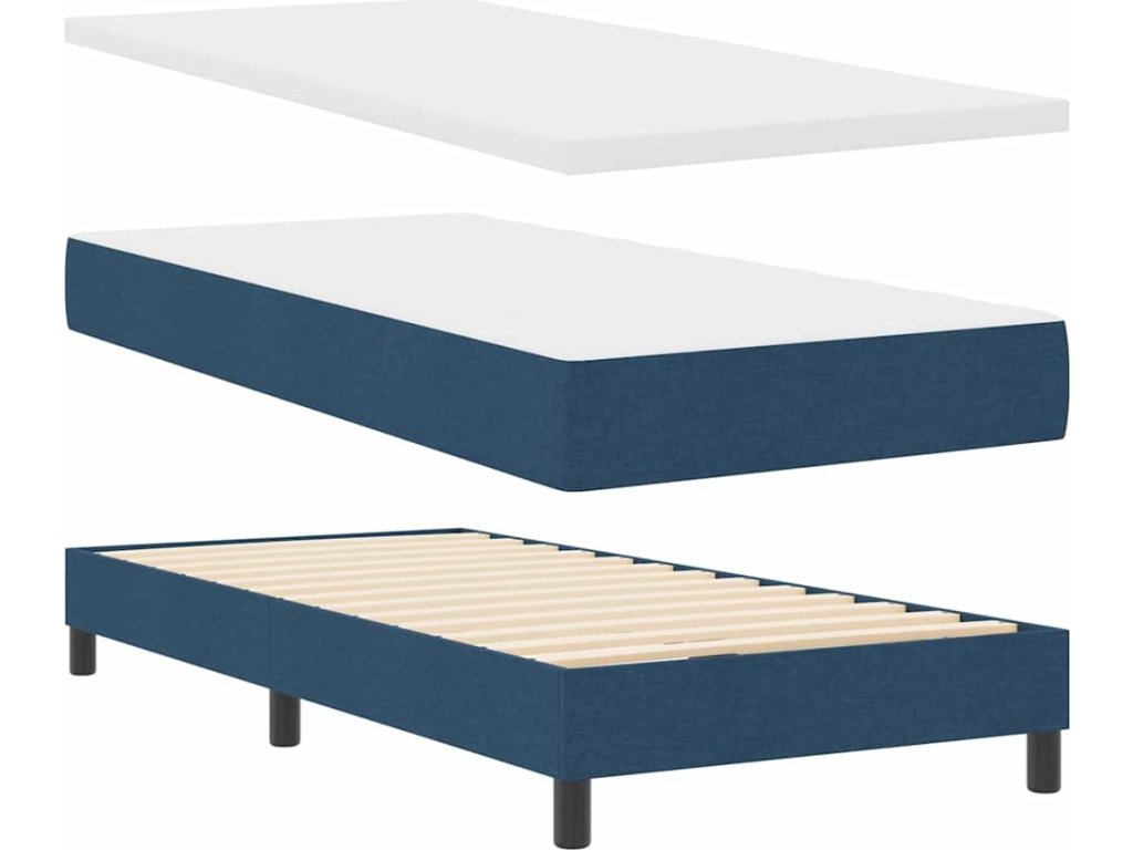 Postel s boxspringem s matrací s čelo Modrá 100 x 200 cm textil [3339953]