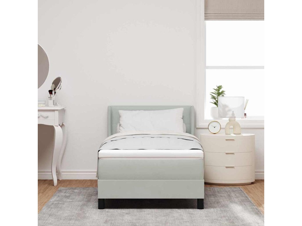 Postel s boxspringem s čelo Světle šedá 190 x 90 cm Polyester [3341444]