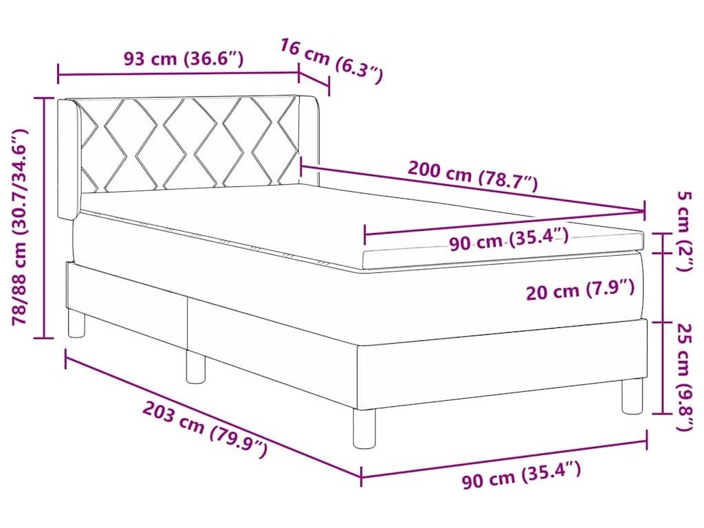 | Kompatibilní velikost matrace: | Jednolůžko (90 cm x 200 cm nebo 35" x 79") |