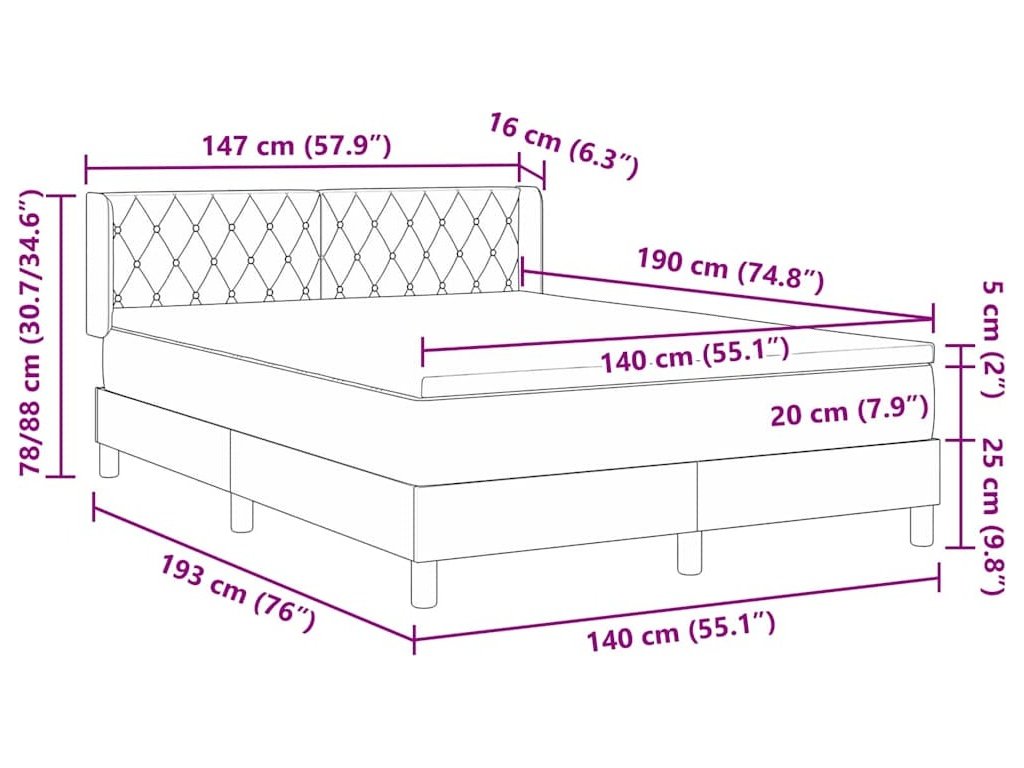 | Kompatibilní velikost matrace: | Krátká dvojpostel (140 cm x 190 cm nebo 55" x 75") |
