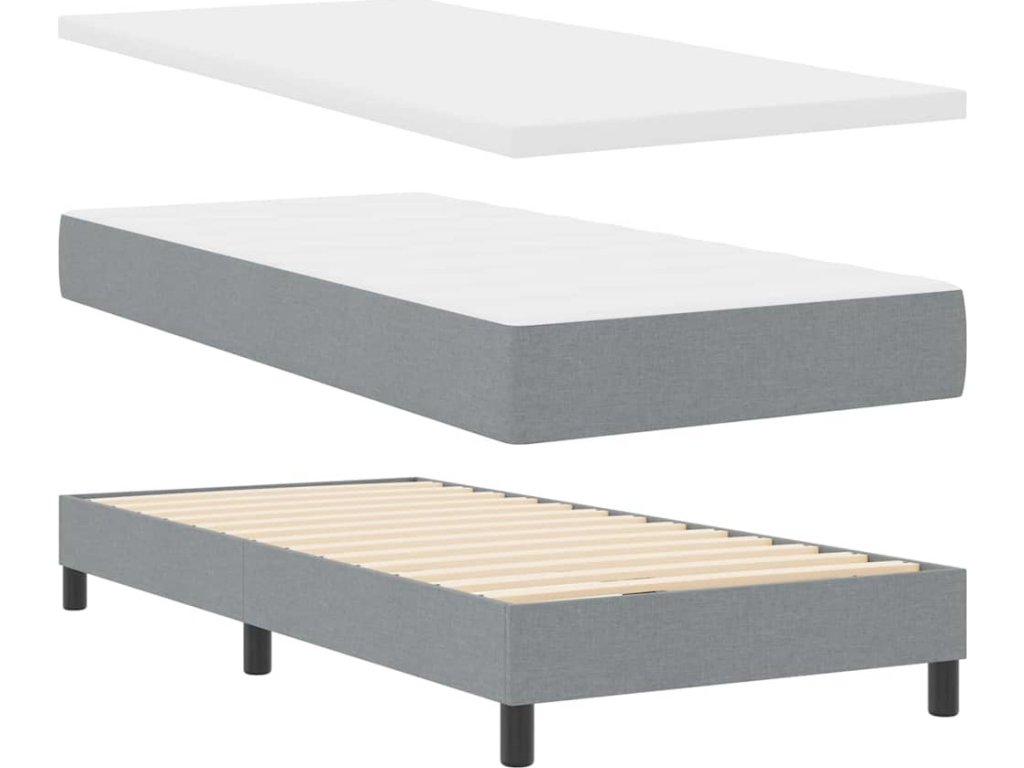 Postel s boxspringem s čelo Světle šedá 200 x 90 cm Polyester [3341146]