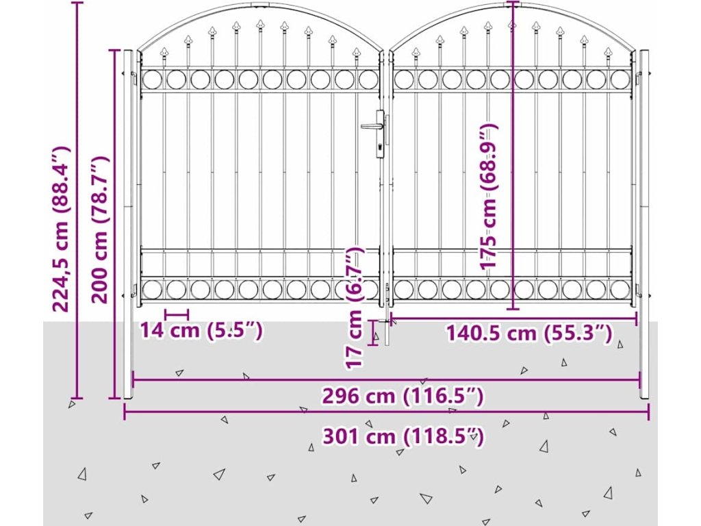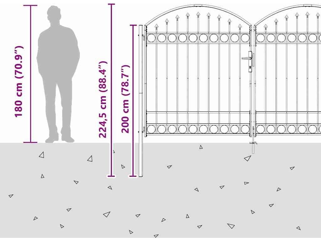 Brána na plot se zámkem Šedá 301 x 224,5 cm Ocel [42008936]