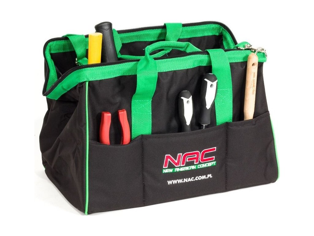 Máte doma elektrické nářadí řady NAC AKUMULTISYSTEM 20V? Pořiďte si pro něj funkční brašnu NAC. Je vyrobená z vodotěsného materiálu. Navíc má rukojeť pokrytou protiskluzovou vrstvou, takže ji pohodlně přenášíte. Zesílené dno a okraje dobře drží tvar. Do postranních kapes si uložíte nejrůznější ruční nářadí.