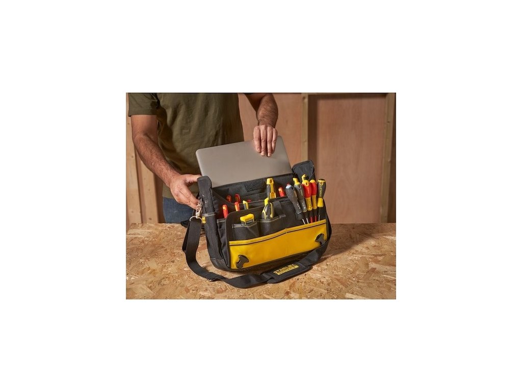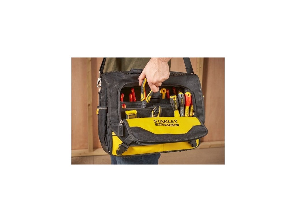 Praktická brašna Stanley Fatmax je určena na nářadí, laptopy a notebooky. Obsahuje více kapes a popruhů pro lepší organizaci vašich pomůcek. Polstrovaný ramenní popruh zajistí větší pohodlí při přepravě. Brašna unese až 20 kg.
