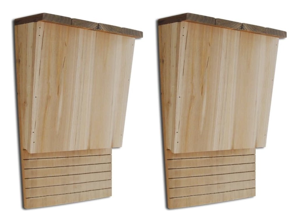 Tyto budky pro netopýry jsou speciálně navržené pro hřadování netopýrů. Dlouhá přistávací podložka zajišťuje snadný přístup. Každý z jednokomorových úkrytů poskytuje spoustu místa pro tucet okřídlených kamarádů. Budky jsou opatřené kovovými poutky, takže jsou připravené k zavěšení ve vaší zahradě.