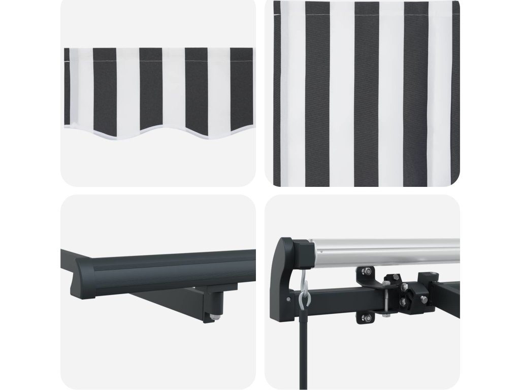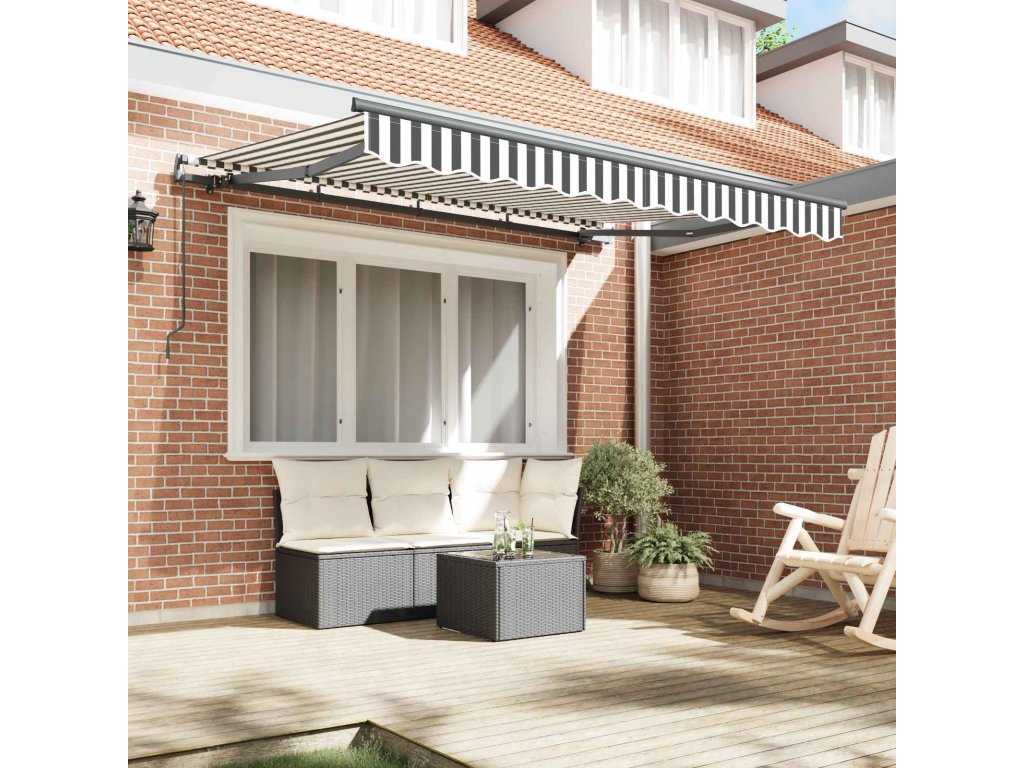 Tato moderní výsuvná markýza je ideální pro zahrady a terasy a spojuje styl s funkcionalitou. Její design s proužky dodává energii a přitom skvěle chrání před letním sluncem.