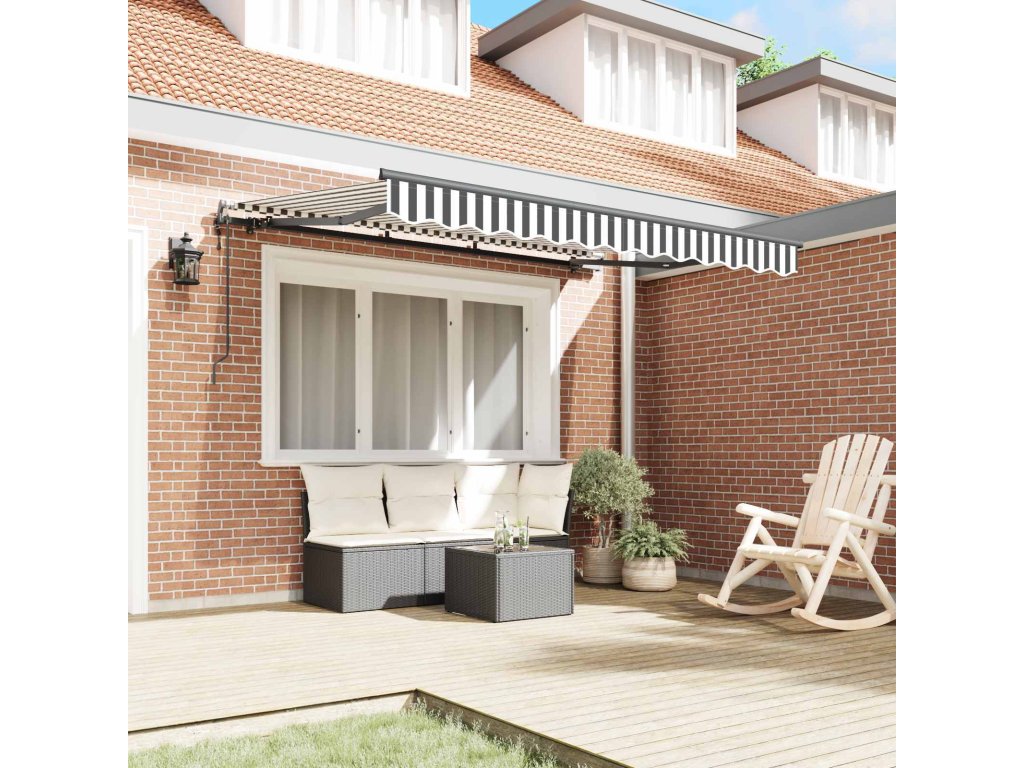 Tato moderní výsuvná markýza je ideální pro zahrady a terasy a spojuje styl s funkcionalitou. Její design s proužky dodává energii a přitom skvěle chrání před letním sluncem.