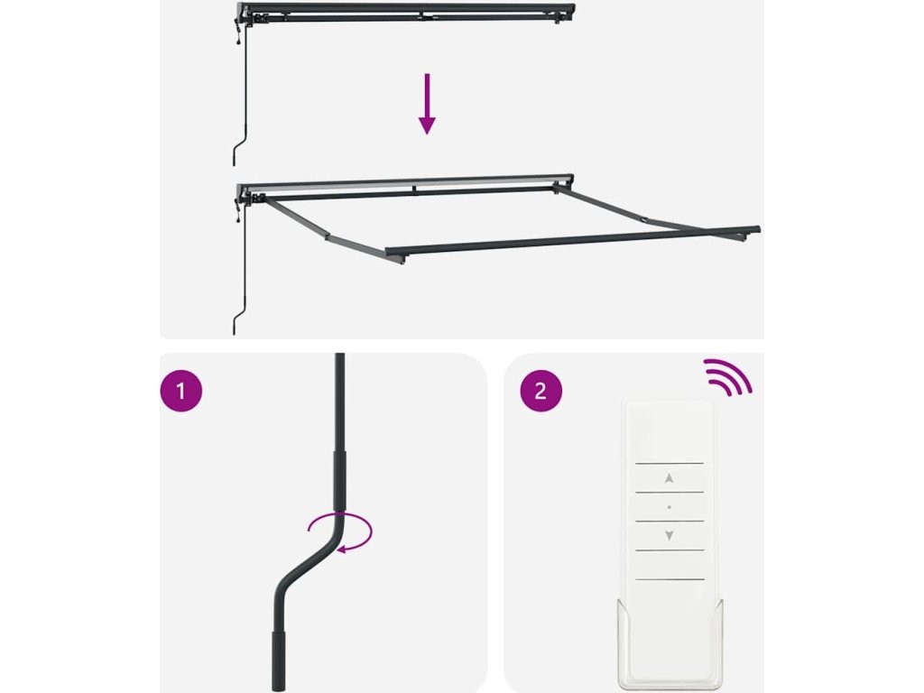 - Výsuvný mechanismus s dálkovým ovládáním: To vám zajišťuje maximální pohodlí, protože si můžete markýzu jednoduše rozšířit nebo stáhnout stisknutím tlačítka. S dálkovým ovládáním můžete upravit stín odkudkoli. Bavte se na sluníčku, nebo si vytvořte příjemné místo ve stínu, když je horko.