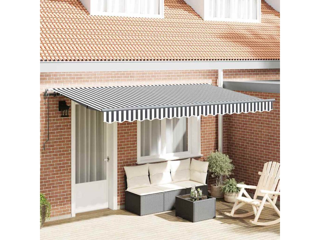 Tato moderní výsuvná markýza je ideální pro zahrady a terasy a spojuje styl s funkcionalitou. Její design s proužky dodává energii a přitom skvěle chrání před letním sluncem.