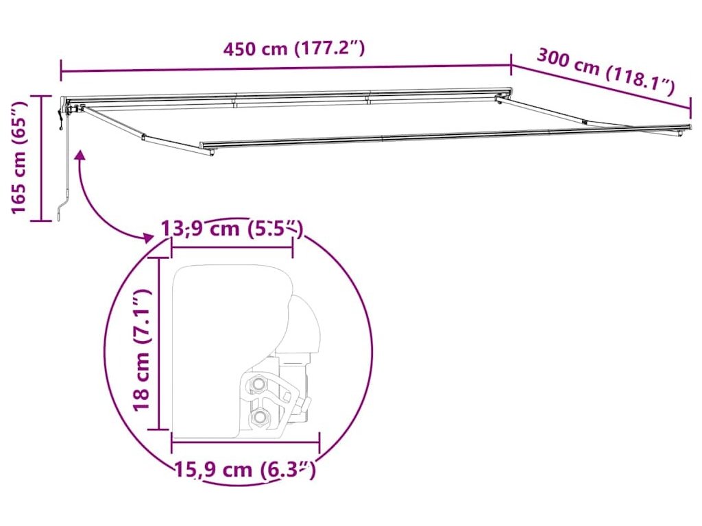 Tahle moderní výsuvná markýza je perfektní doplněk pro každou zahradu nebo terasu. Nabízí stylové a praktické řešení pro sluneční stínění. S elegantními, čistými liniemi a minimalistickým designem dodává vašemu venkovnímu prostoru šmrnc. Ať už pořádáte letní večírek, nebo chcete mít klidný únik před sluncem, tahle markýza splní všechny vaše potřeby. Její výsuvný mechanismus vám dá flexibilitu ve stínění, takže si užijete pohodlí během slunečných dnů. Bez problému se zapadá do zahrad a teras a doplňuje moderní vzhled.