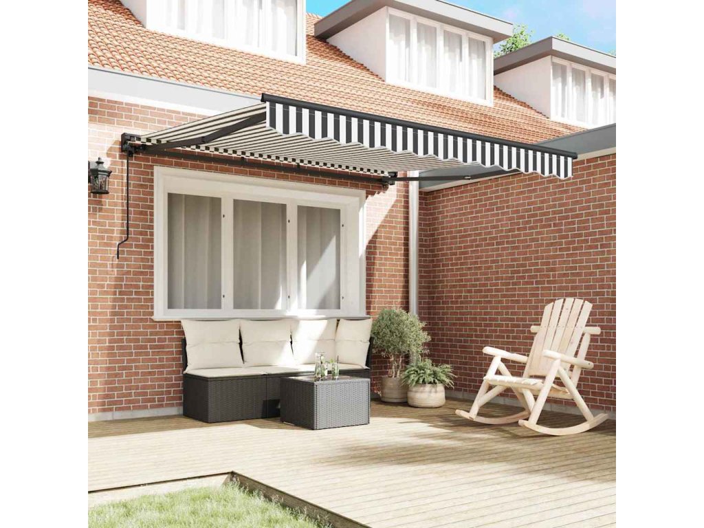 Tahle moderní výsuvná markýza je perfektní doplněk pro každou zahradu nebo terasu. Nabízí stylové a praktické řešení pro sluneční stínění. S elegantními, čistými liniemi a minimalistickým designem dodává vašemu venkovnímu prostoru šmrnc. Ať už pořádáte letní večírek, nebo chcete mít klidný únik před sluncem, tahle markýza splní všechny vaše potřeby. Její výsuvný mechanismus vám dá flexibilitu ve stínění, takže si užijete pohodlí během slunečných dnů. Bez problému se zapadá do zahrad a teras a doplňuje moderní vzhled.