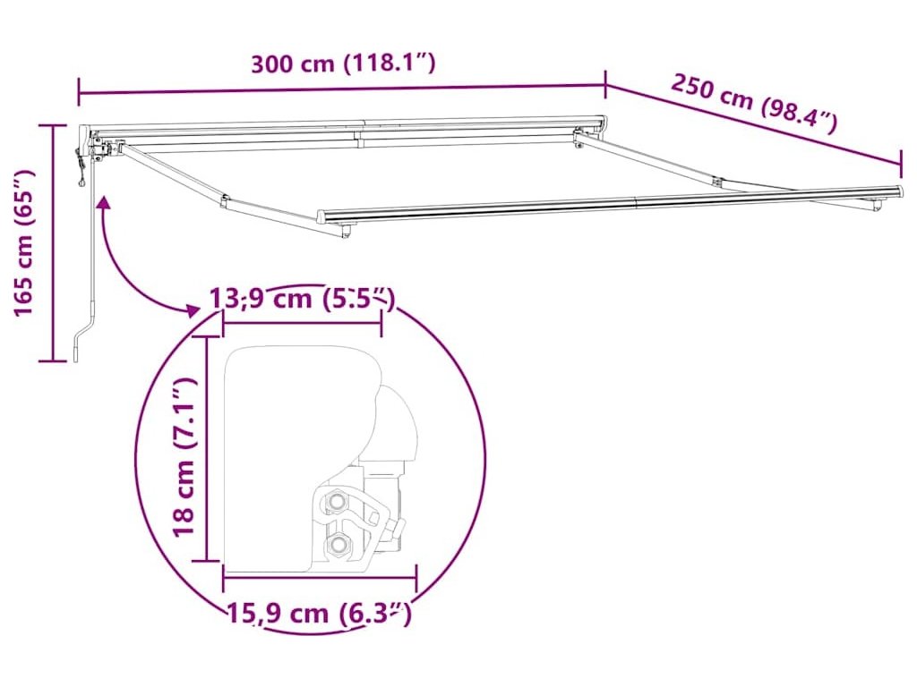 Tahle moderní výsuvná markýza je perfektní doplněk pro každou zahradu nebo terasu. Nabízí stylové a praktické řešení pro sluneční stínění. S elegantními, čistými liniemi a minimalistickým designem dodává vašemu venkovnímu prostoru šmrnc. Ať už pořádáte letní večírek, nebo chcete mít klidný únik před sluncem, tahle markýza splní všechny vaše potřeby. Její výsuvný mechanismus vám dá flexibilitu ve stínění, takže si užijete pohodlí během slunečných dnů. Bez problému se zapadá do zahrad a teras a doplňuje moderní vzhled.