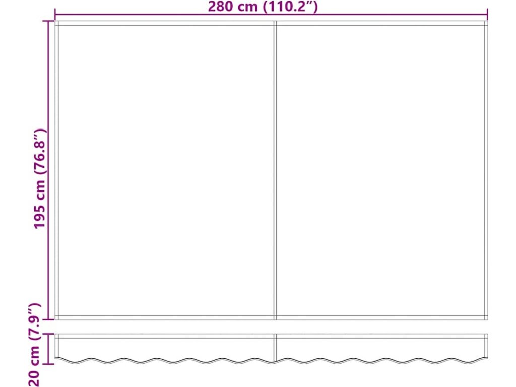 - 1 x látka markýzy: 280 x 245 x 20 cm (D x Š x V)