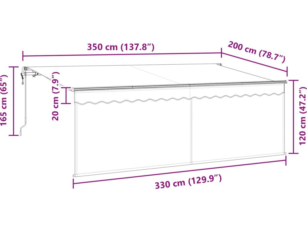 - Celkové rozměry: 350 x 200 x 165 cm (D x Š x V)