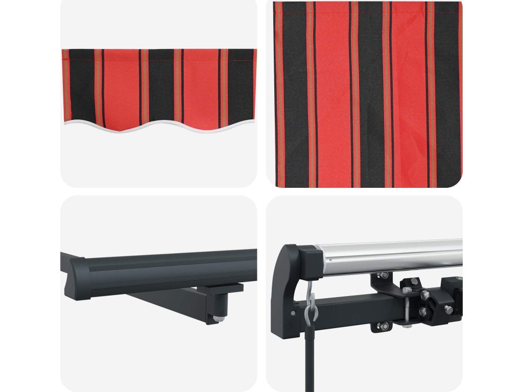 - Robustní materiály: Vyrobená z kvalitního polyesteru a odolné oceli, markýza skvěle odolává počasí a chrání před UV zářením, vodou i blednutím, což zajišťuje dlouhou životnost. Uživatelé mohou očekávat spolehlivé a vizuálně atraktivní řešení pro venkovní užívání po celou sezónu.