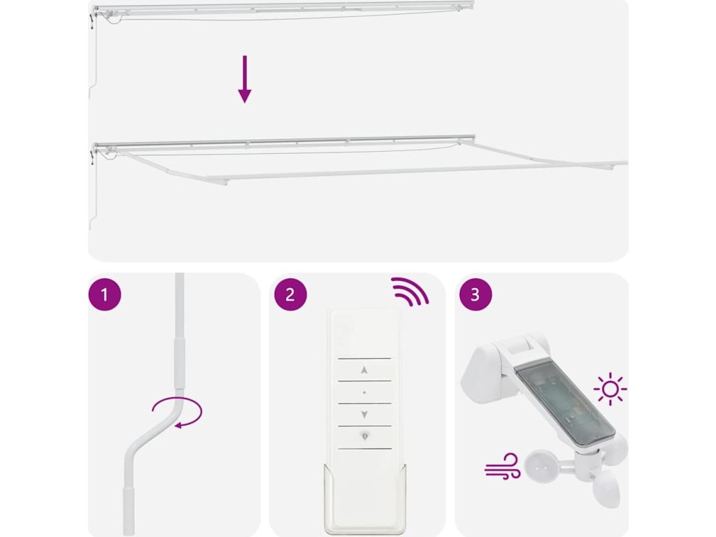 - Součásti: S LED pásky vám markýza zajistí nejen stín, ale i osvětlení. Tyto LED pásky jsou součástí designu a nabídnou skvělé možnosti osvětlení, které umocní večerní setkání na terase.