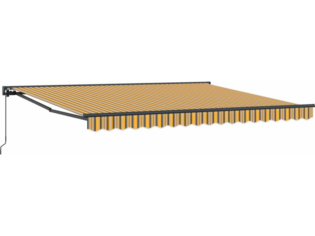 - Odolné materiály: Tato markýza je vyrobená z kombinace polyesteru a kovu – skvělá pevná struktura. Polyester odolává každodennímu opotřebení, zatímco kovový rám zajišťuje stabilitu a zvyšuje její trvanlivost v různých povětrnostních podmínkách.