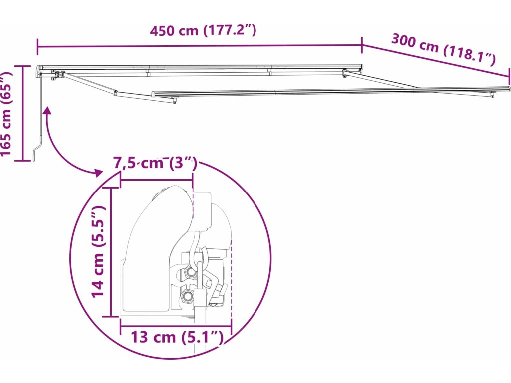 Tato moderní výsuvná markýza dodá elegantní styl a praktickou funkčnost do každé zahrady či na terasu. Její jednoduše působící design spojuje moderní estetiku s uživatelskou přívětivostí, takže se hodí do jakéhokoliv venkovního prostoru. Ideální pro horké letní dny, poskytuje spoustu stínu pro vaše pohodlí.