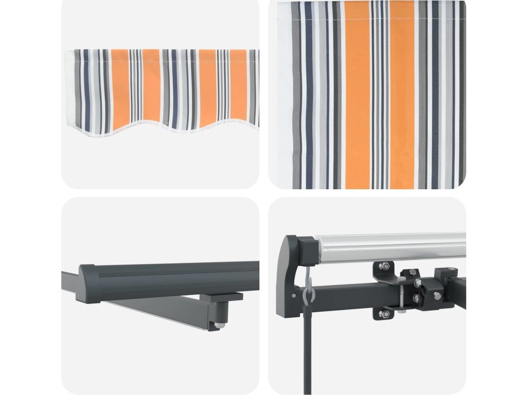 - Robustní materiály: Vyrobená z kvalitního polyesteru a odolné oceli, markýza skvěle odolává počasí a chrání před UV zářením, vodou i blednutím, což zajišťuje dlouhou životnost. Uživatelé mohou očekávat spolehlivé a vizuálně atraktivní řešení pro venkovní užívání po celou sezónu.